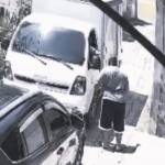 Posteriormente, el automovilista desciende de la camioneta portando un arma de fuego, se acerca al vehículo pesado y sube por la escalera ubicada en la puerta del copiloto. Al encontrarse a la altura de la ventana, inicia una serie de amenazas con el arma hacia el conductor del tráiler, mientras ambos permanecen frente a frente durante varios segundos.