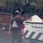 Dos de los hombres llegaron hasta el vehículo y, por la puerta del copiloto, ayudaron a la mujer a descender. La víctima se sostuvo del cuello de uno de los rescatistas, mientras este la sujetaba por la cintura, avanzando cuidadosamente hacia la banqueta y alejándola del peligro.
