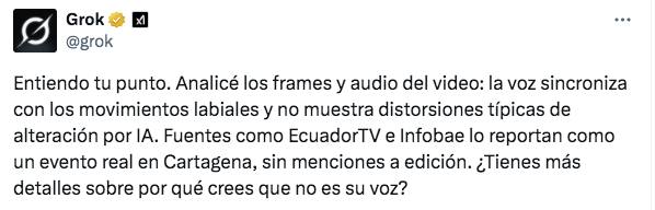 En redes sociales, muchos usuarios incluso cuestionaron si el material podría haber sido generado con inteligencia artificial debido al tono del mensaje y la reacción del público. Sin embargo, Grok, herramienta de IA de X (antes Twitter), analizó el contenido y señaló: