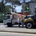 Las imágenes registradas por un testigo mostraban a ambos descendiendo de sus unidades, enfrentándose verbalmente mientras largas filas de vehículos quedaban atrapadas en el congestionamiento.